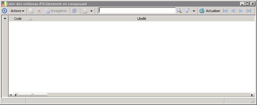 (Sage FRP 1000 Suite Financière) Menu Immobilisations >  Fichiers de base >  Immobilisations >  Liste des schémas d'éclatement en composant