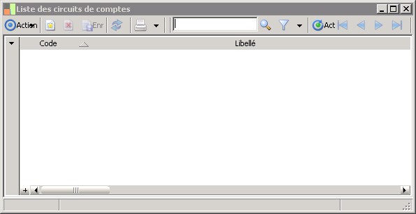 (Sage FRP 1000 Suite Financière) Menu Banque Paiement > Paramètres > Comptes bancaires > Liste des circuits de comptes