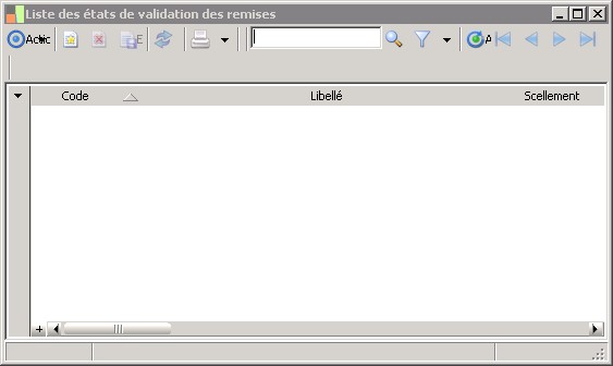 (Sage FRP 1000 Suite Financière) Menu Banque Paiement > Paramètres > Ordres et remises bancaires > Liste des états de validation des remises
