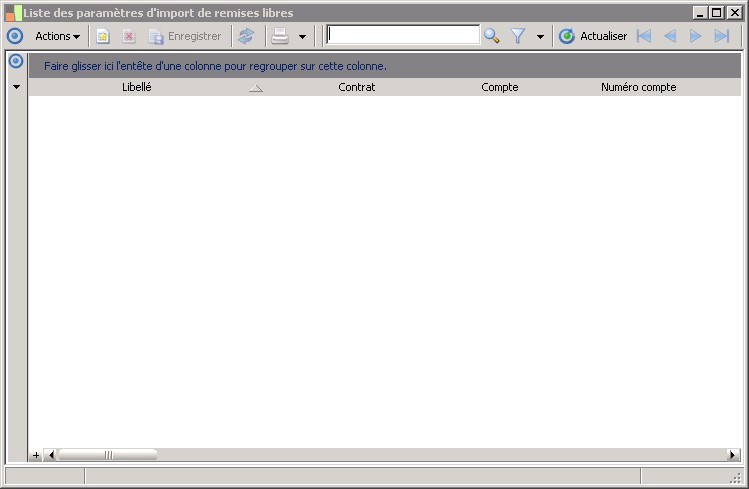 (Sage FRP 1000 Suite Financière) Menu Banque Paiement > Paramètres > Liste des paramètres d'import de remises libres