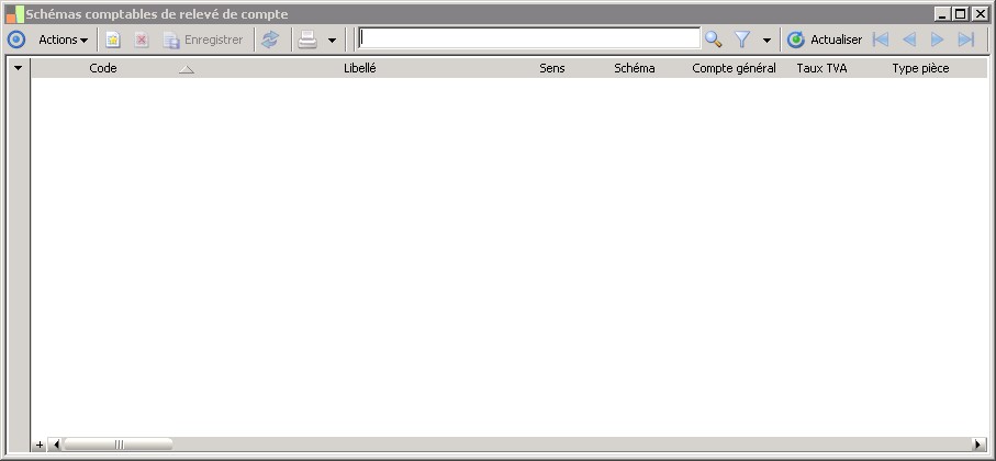 (Sage FRP 1000 Suite Financière) Menu Banque Paiement > Paramètres > Comptabilisation > Schémas comptables de relevé de compte