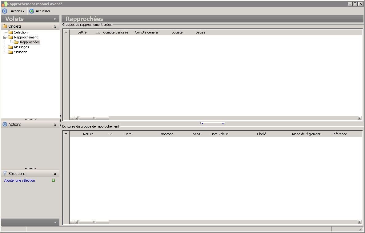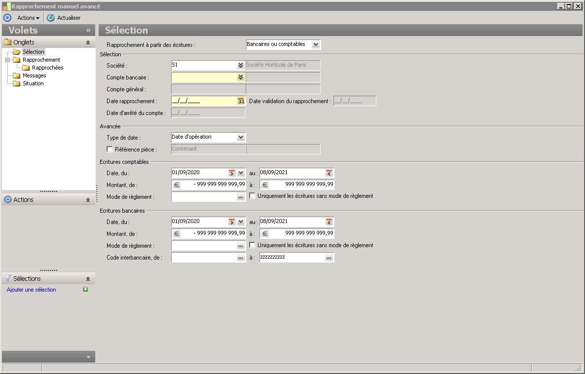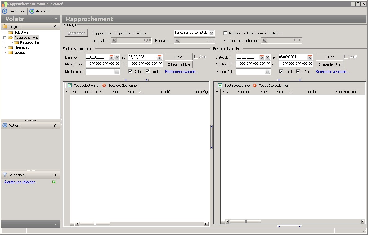 (Sage FRP 1000 Suite Financière) Menu Comptabilité > Générale > Rapprochement > Rapprochement manuel avancé