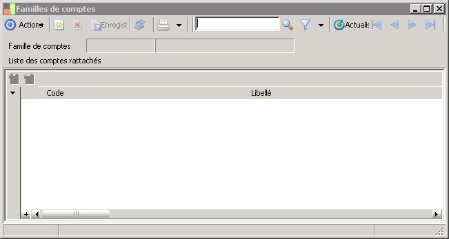 (Sage FRP 1000 Suite Financière) Menu Comptabilité > Paramètres > Banques > Familles de comptes
