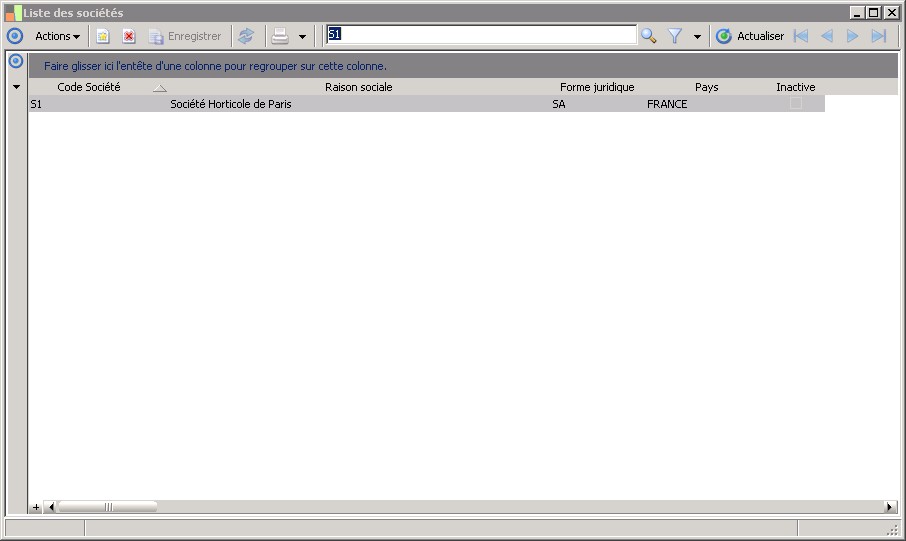 (Sage FRP 1000 Suite Financière) Menu Processus Opérationnels > Paramètres > Société > Liste des sociétés