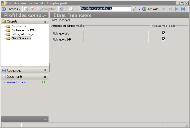 Le compte modèle du compte profil est utilisé comme modèle lors de la création d'un nouveau compte. Les valeurs de chaque attribut du compte modèle sont effectivement proposées par défaut en création de compte.Après sélection du compte modèle, le programme fait apparaître automatiquement les valeurs de chaque attribut de ce compte au niveau du compte profil afin de déterminer si la zone peut être modifiée ou non. |