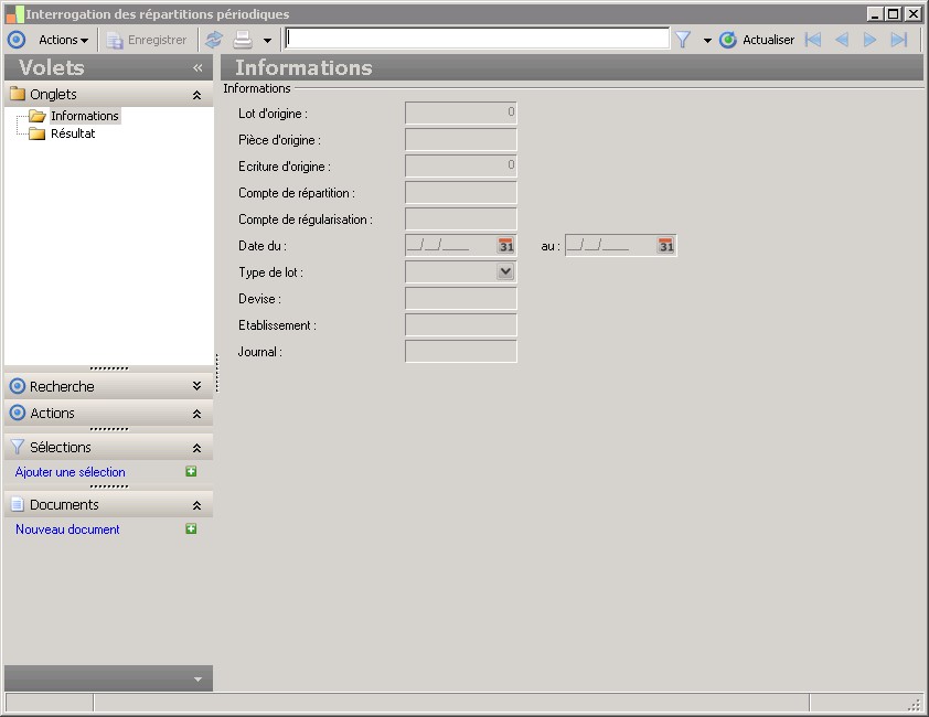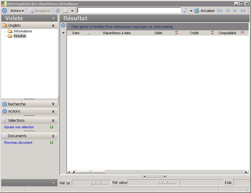 (Sage FRP 1000 Suite Financière) Menu Comptabilité > Générale > Répartitions périodiques > Interrogation des répartitions périodiques