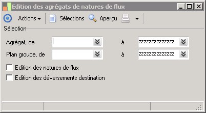 (Sage FRP 1000 Suite Financière) Menu Comptabilité > Paramètres > Comptabilité analytique > Edition des agrégats de natures de flux