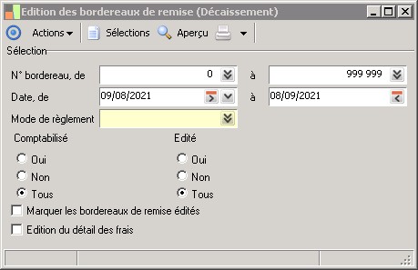 Cette option permet de présenter uniquement les bordereaux édités, non édités ou tous.