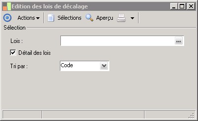 Permet de sélectionner un ordre de présentation des lois (code ou libellé). Par défaut, les lois de décalage sont triées par code.