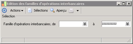 (Sage FRP 1000 Suite Financière) Menu Comptabilité > Paramètres > Banques > Edition des familles d'opérations interbancaires