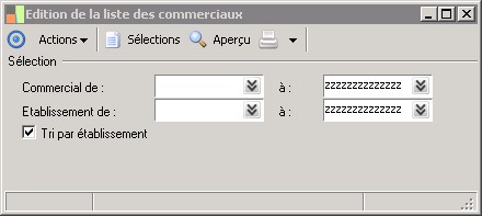 (Sage FRP 1000 Suite Financière) Menu Processus Opérationnels > Paramètres > Clients > Edition de la liste des commerciaux