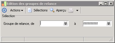 (Sage FRP 1000 Suite Financière) Menu Comptabilité Groupe > Paramètres > Tiers > Edition des groupes de relance
