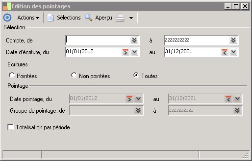 (Sage FRP 1000 Suite Financière) Menu Comptabilité > Générale > Pointage > Edition des pointages