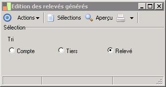 (Sage FRP 1000 Suite Financière) Menu Comptabilité > Echéancier > Encaissements > Edition des relevés générés