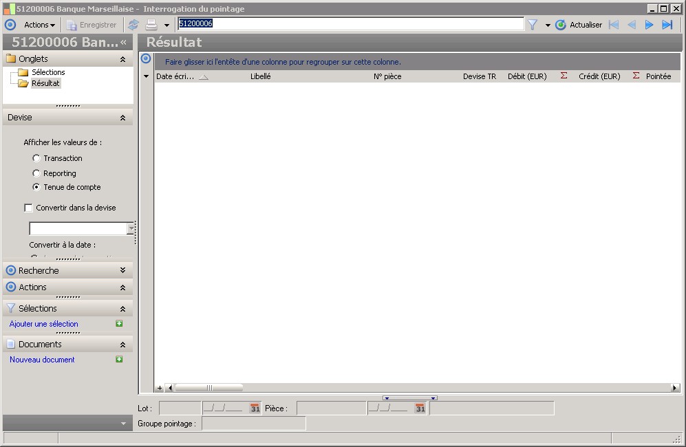 (Sage FRP 1000 Suite Financière) Menu Comptabilité > Générale > Pointage > Interrogation du pointage