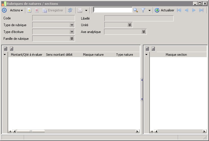 pour saisir le masque de sélection des sections et centres analytiques à intégrer à la rubrique.Présentation
