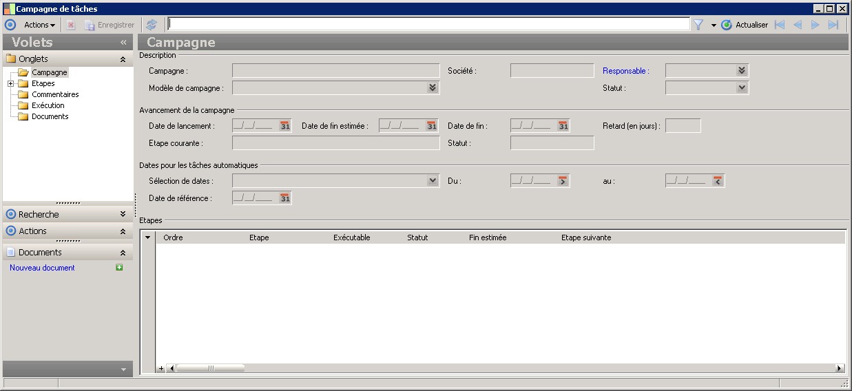 (Sage FRP 1000 Trésorerie) Menu Campagne > Campagnes > Campagne de tâches