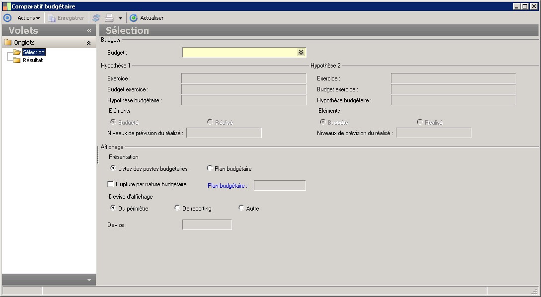 Permet de sélectionner une hypothèse budgétaire. |