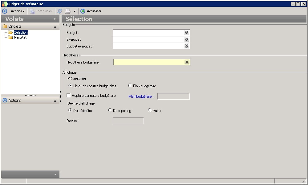 (Sage FRP 1000 Trésorerie) Menu Budget > Analyses > Budget de trésorerie