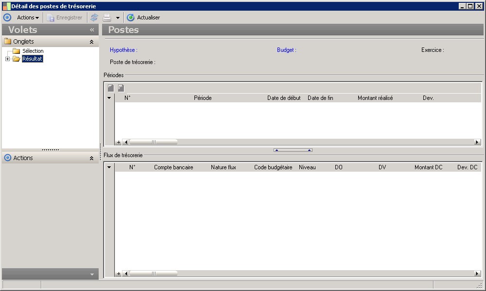 (Sage FRP 1000 Trésorerie) Menu Budget > Ventilations > Détail des postes de trésorerie