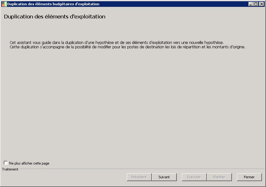 (Sage FRP 1000 Trésorerie) Menu Budget > Hypothèses > Duplication des éléments budgétaires d'exploitation