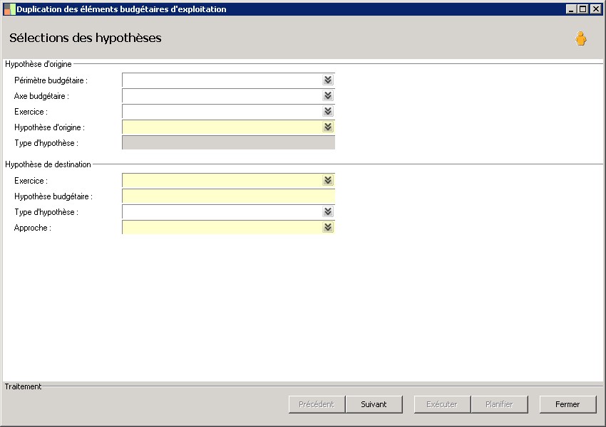 Vous pouvez sélectionner pour l'hypothèse de destination un exercice différent de celui de l'hypothèse d'origine ; néanmoins, l'exercice choisi doit avoir la même dimension temps. |