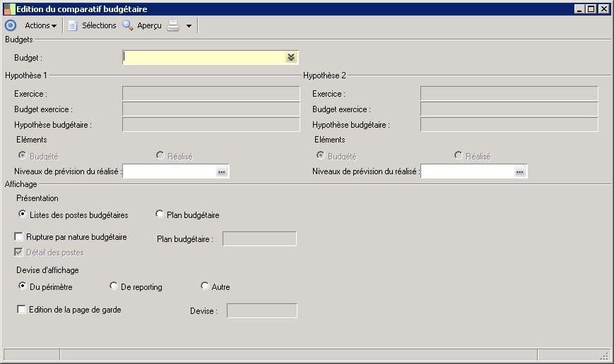 (Sage FRP 1000 Trésorerie) Menu Budget > Analyses > Edition du comparatif budgétaire