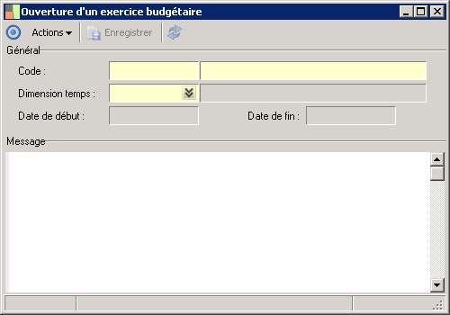 (Sage FRP 1000 Trésorerie) Menu Budget > Paramètres > Ouverture d'un exercice budgétaire
