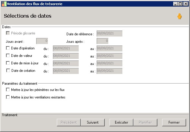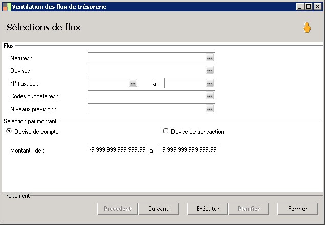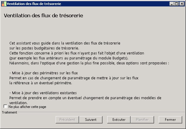 (Sage FRP 1000 Trésorerie) Menu Budget > Ventilations > Ventilation des flux de trésorerie
