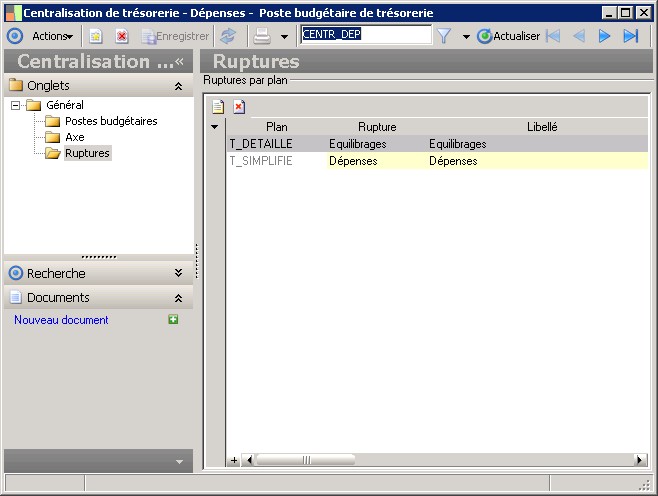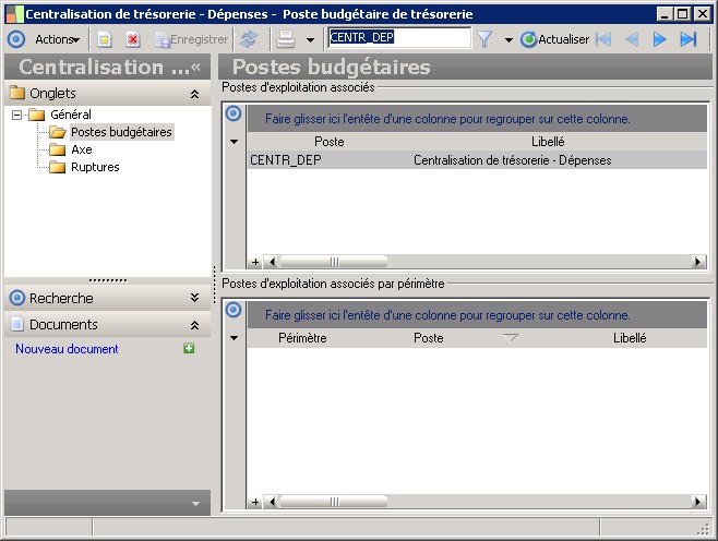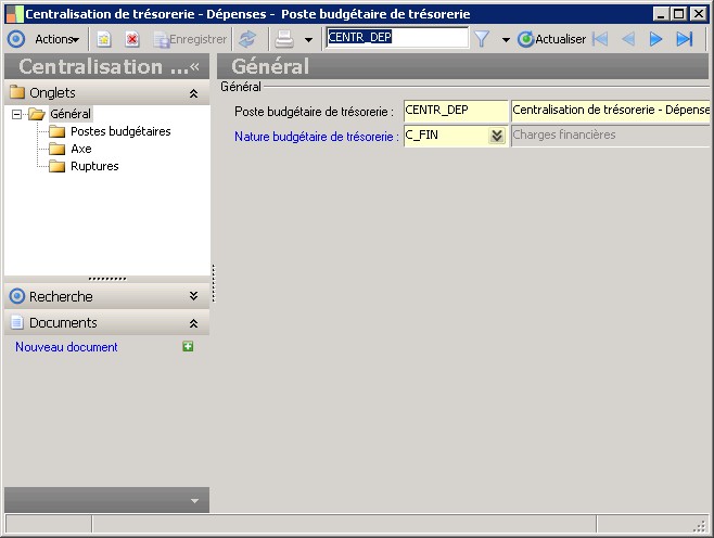 (Sage FRP 1000 Trésorerie) Menu Budget > Paramètres > Poste budgétaire de trésorerie