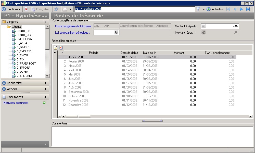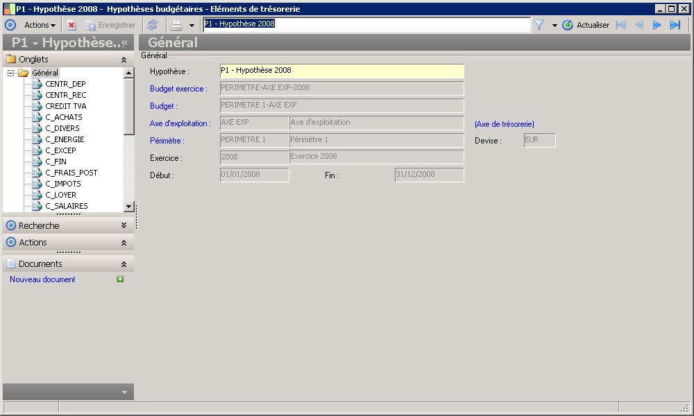 (Sage FRP 1000 Trésorerie) Menu Budget > Hypothèses > Hypothèses budgétaires - Eléments de trésorerie