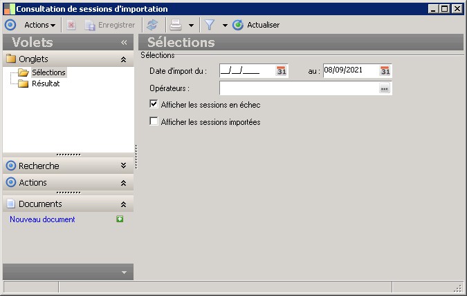 (Sage FRP 1000 Trésorerie) Menu Budget > Initialisation > Consultation de sessions d'importation