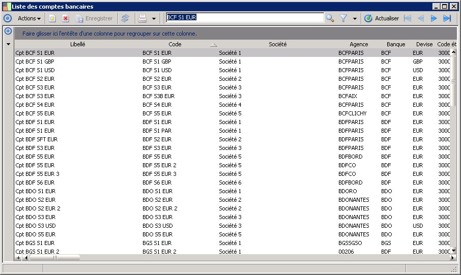 (Sage FRP 1000 Trésorerie) Menu Trésorerie > Paramètres > Banques > Liste des comptes bancaires