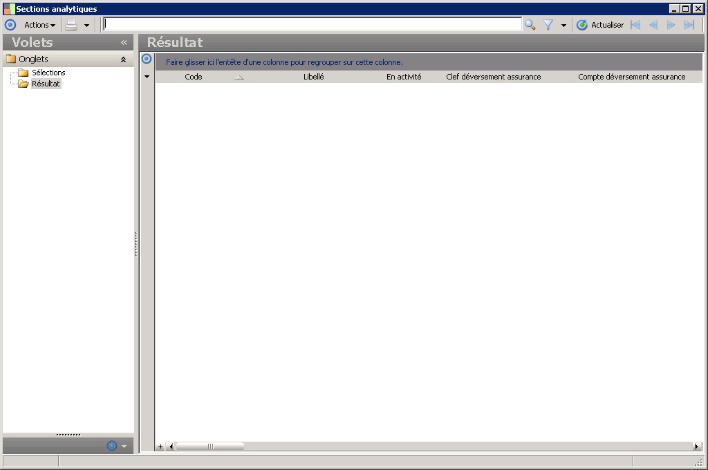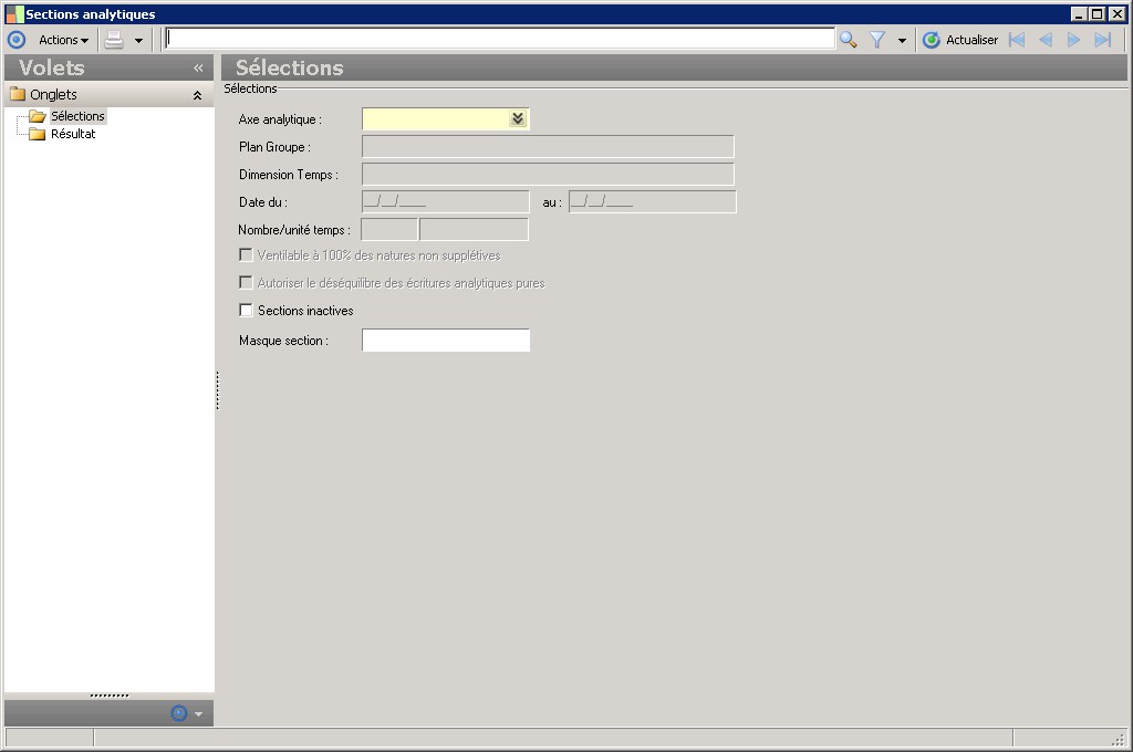 (Sage FRP 1000 Trésorerie) Menu Budget > Paramètres > Sections analytiques