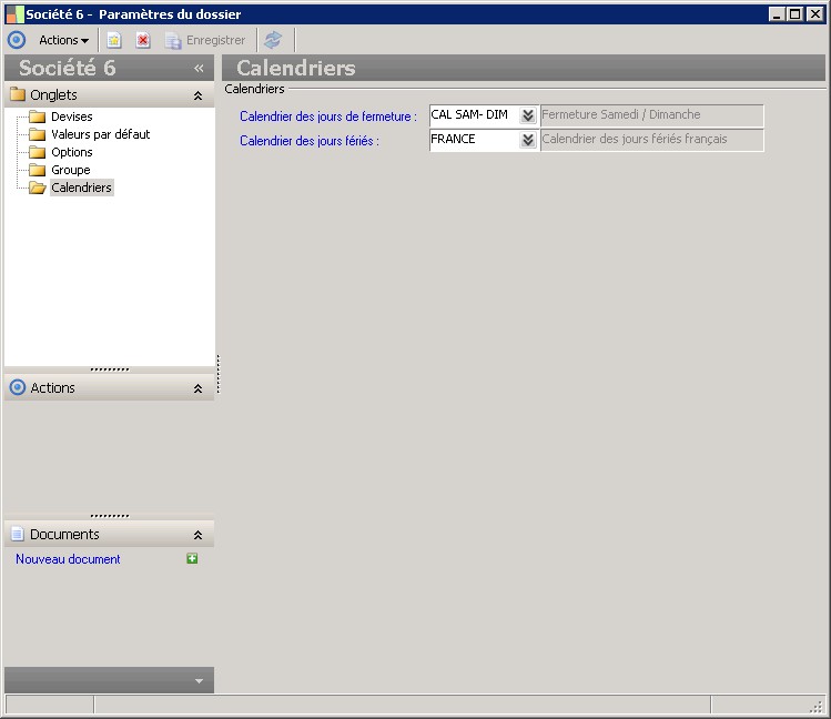 Cette zone permet de renseigner un calendrier des jours fériés repris par défaut sur les établissements de la société. |