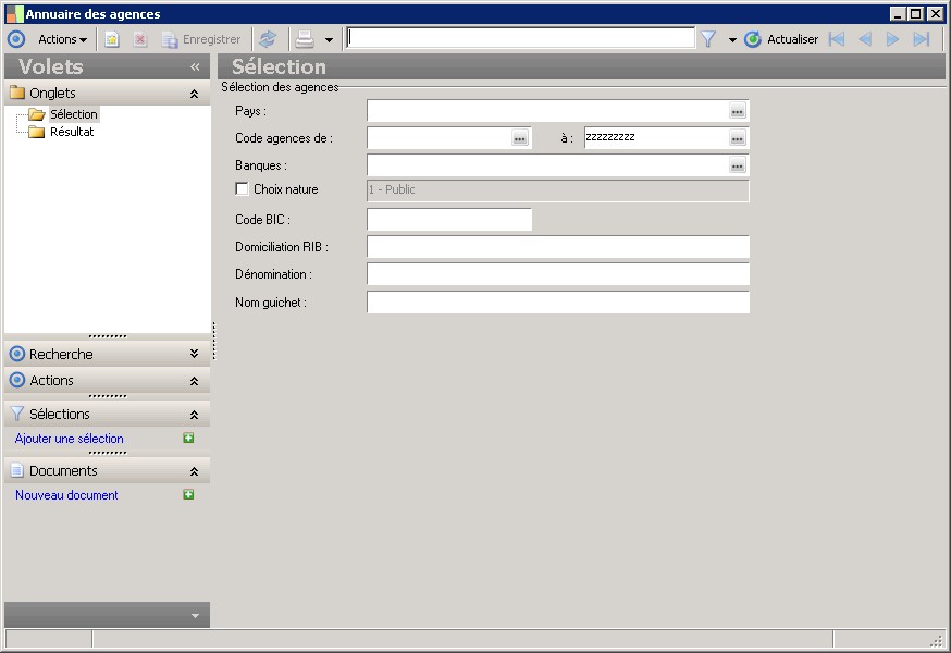 (Sage FRP 1000 Trésorerie) Menu Banque Paiement > Paramètres > Banques > Annuaire des agences