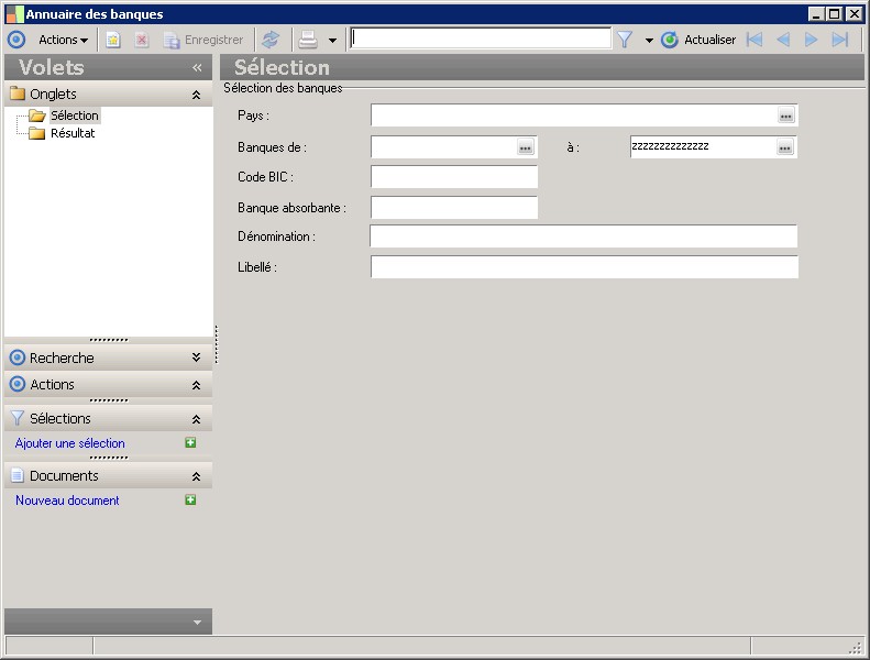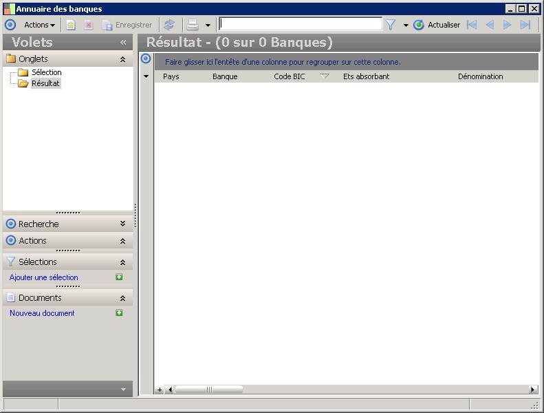 Pour avoir accès à l'annuaire BIC, le fichier Banque De France doit avoir été préalablement importé (fonction Outils / Import/Export / Assistant).Il est ensuite possible d'utiliser les données de l'annuaire pour mettre à jour les données de l'application, en utilisant la fonction Banque/Annuaire/Initialisation des comptes. |