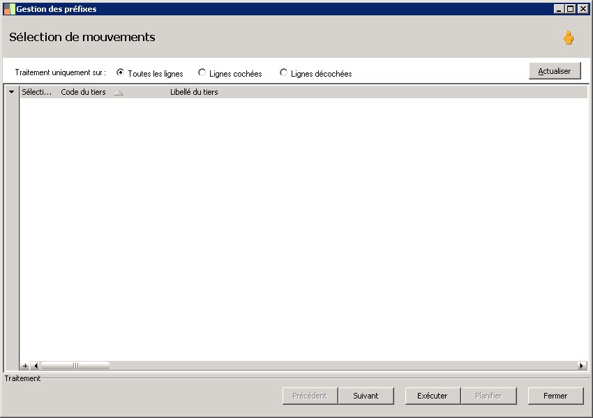 type de traitement : tous, sélectionné, non sélectionné. |