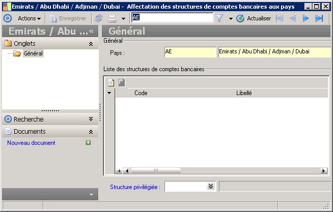 Avant de réaliser toute affectation, il est nécessaire d'avoir paramétré les pays ainsi que les structures de comptes bancaires.