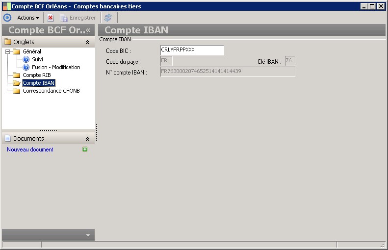 La clé IBAN permet de vérifier que le numéro de compte international a été correctement saisi. Cette zone est renseignée automatiquement par le programme en fonction du numéro de compte français ou étranger saisi. |