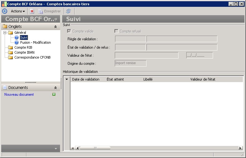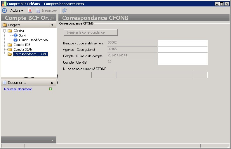 Cette fenêtre est différente de celle servant à la création d'un compte bancaire de tiers. |