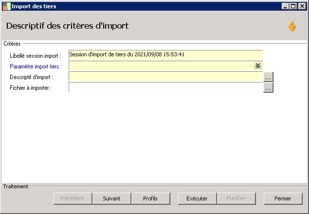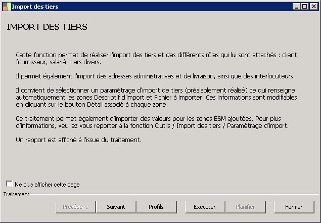 Paramètre import tiers : |