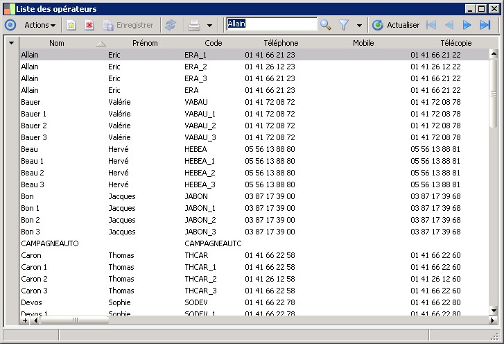 (Sage FRP 1000 Trésorerie) Menu Trésorerie > Paramètres > Sociétés > Liste des opérateurs