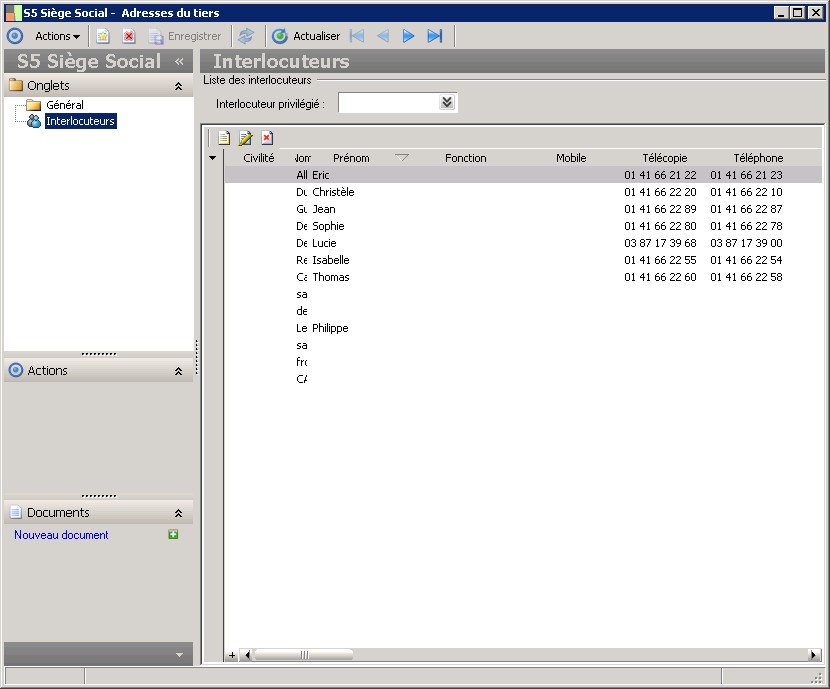 Détail de la page : Interlocuteurs
