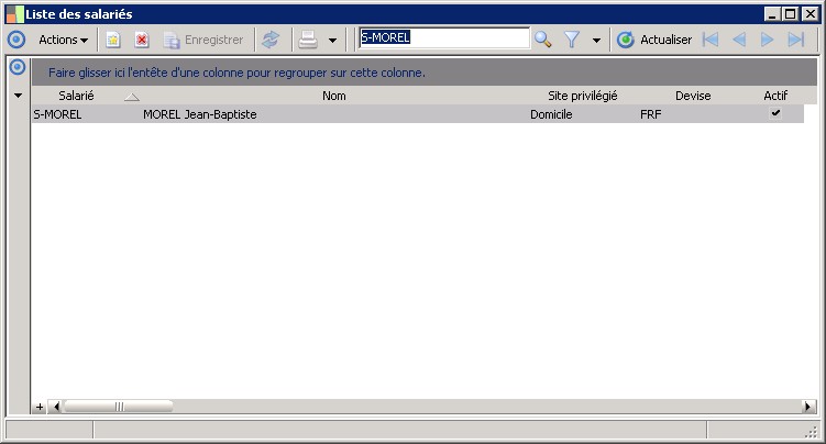 Cette zone indique le statut en activité du salarié. Un salarié inactif ne peut plus être mouvementé. |
