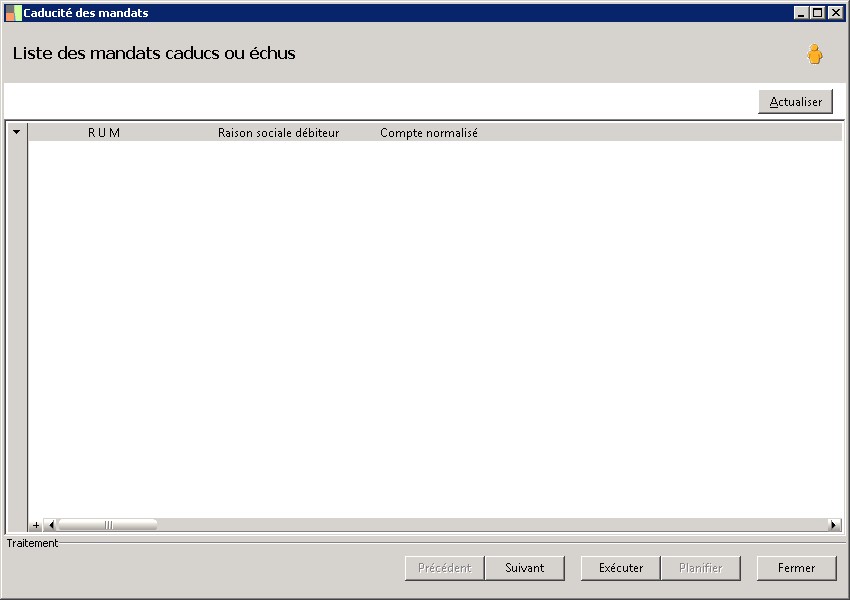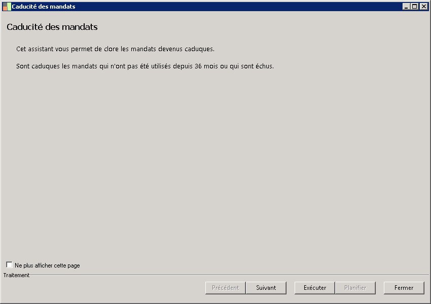 (Sage FRP 1000 Trésorerie) Menu Banque Paiement > Paramètres > Tiers > Caducité des mandats