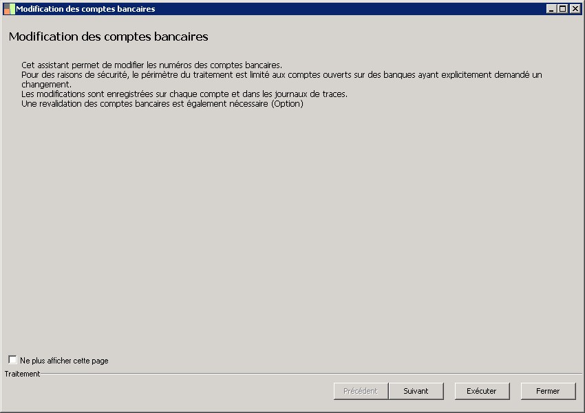 (Sage FRP 1000 Trésorerie) Menu Banque Paiement > Paramètres > Banques > Modification des comptes bancaires