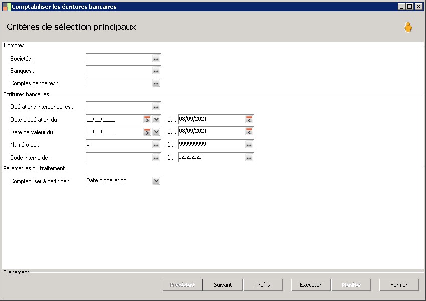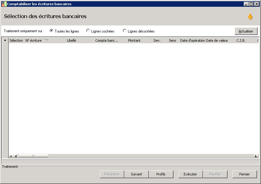 (Sage FRP 1000 Trésorerie) Menu Banque Paiement > Comptabilisation > Comptabiliser les écritures bancaires