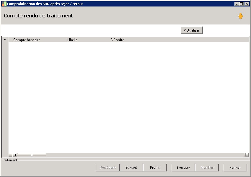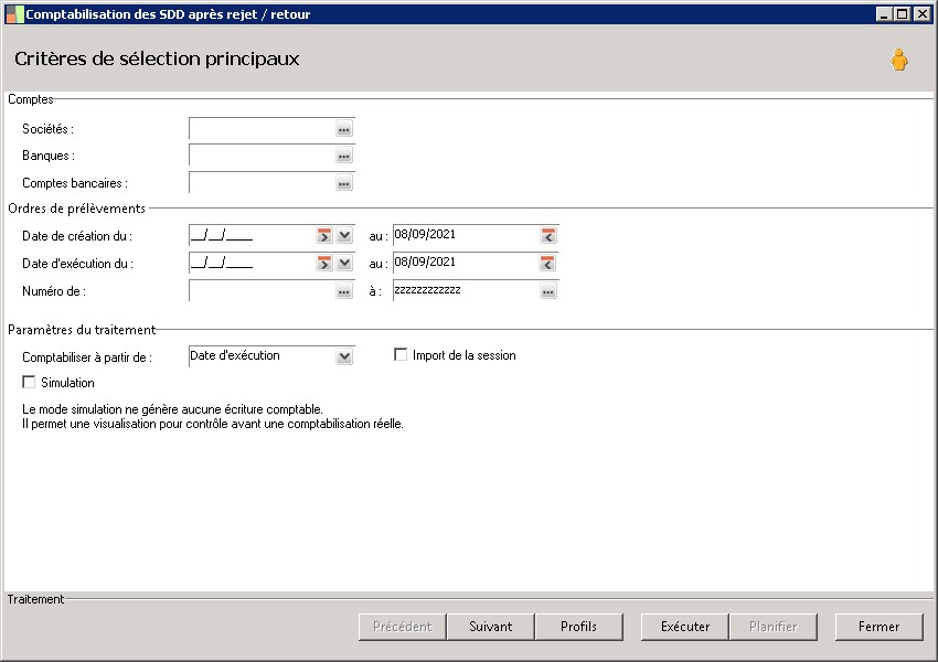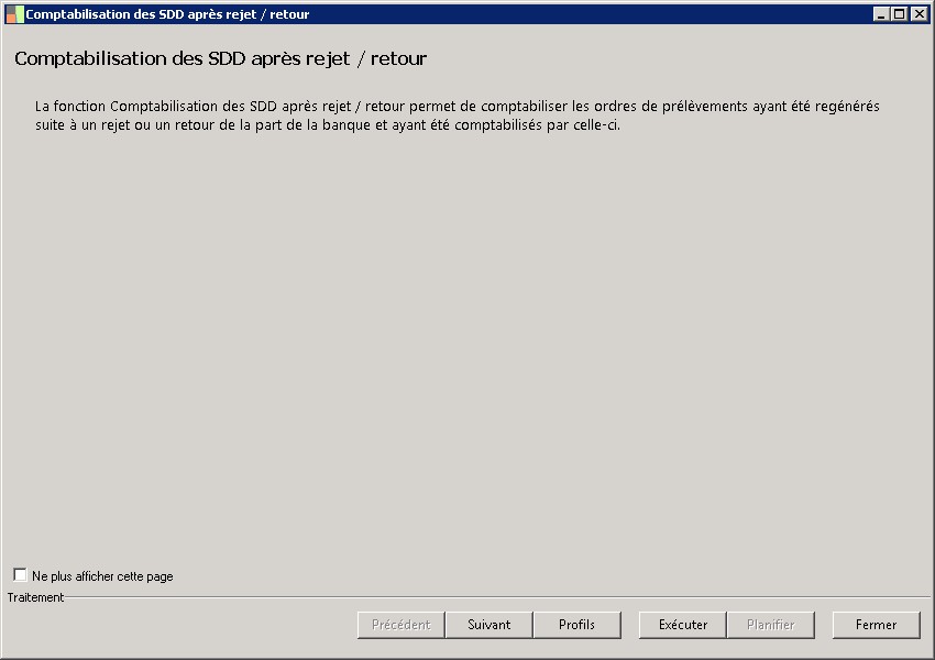 (Sage FRP 1000 Trésorerie) Menu Banque Paiement > Comptabilisation > Comptabilisation des SDD après rejet / retour