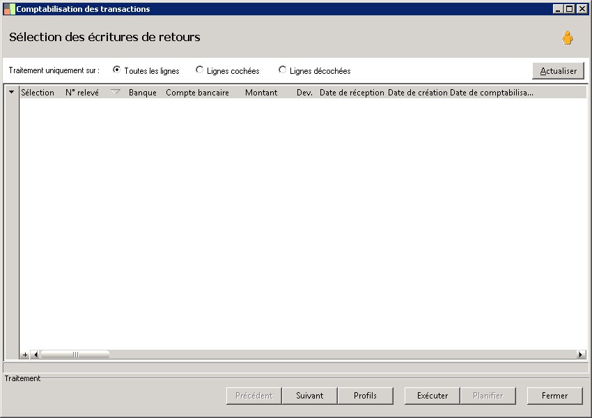 (Sage FRP 1000 Trésorerie) Menu Banque Paiement > Comptabilisation > Comptabilisation des transactions